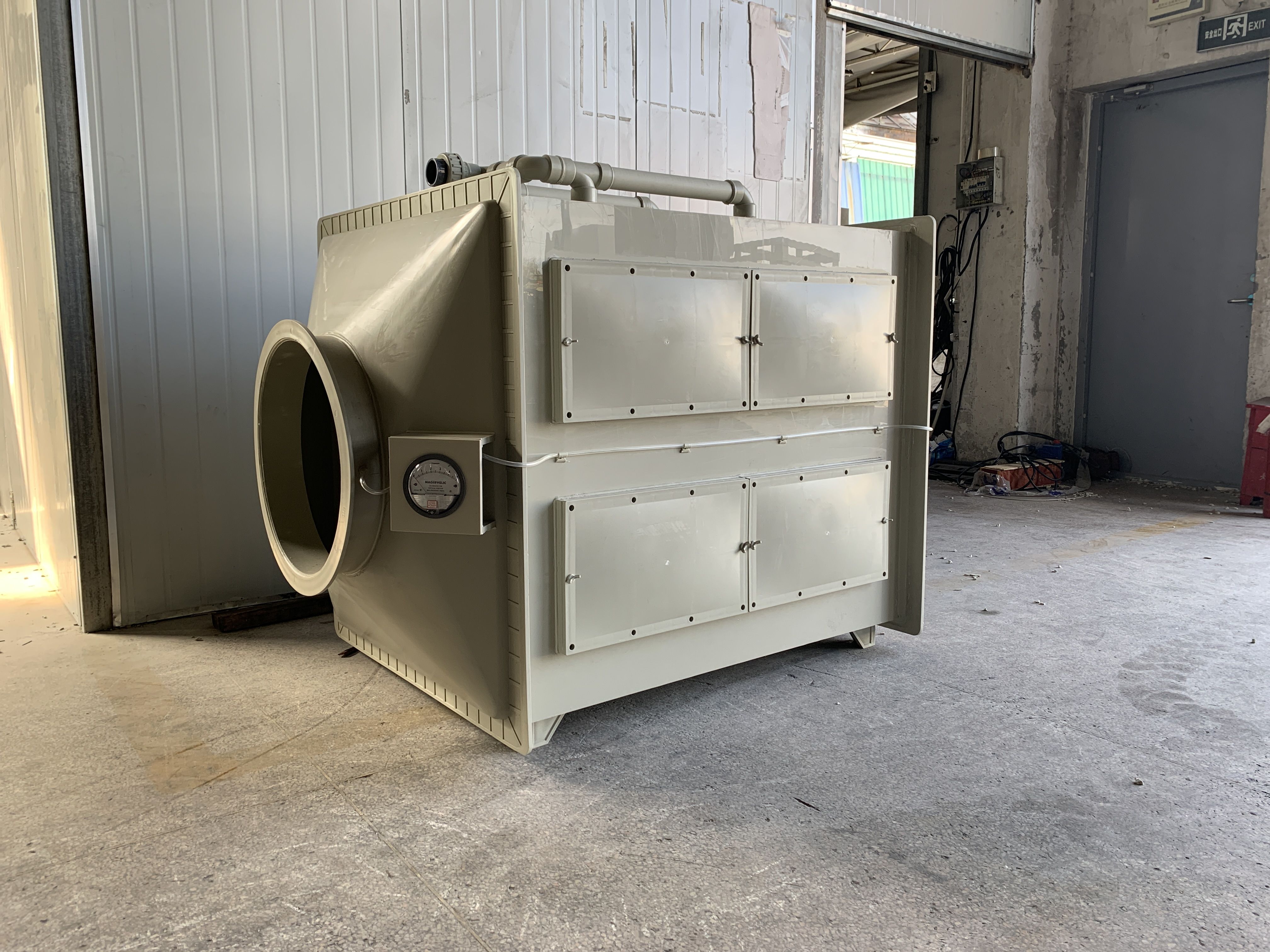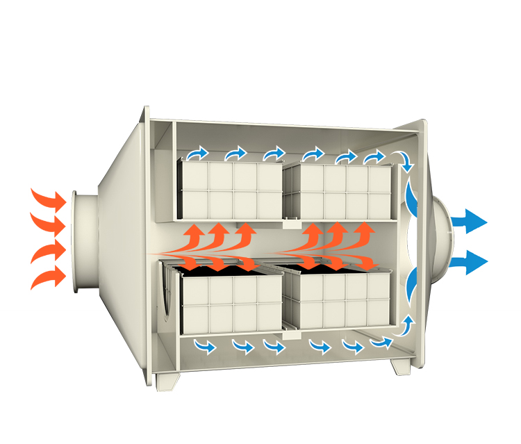 活性炭吸附箱工業VOC有機廢氣處理設備活性炭吸附箱工作原理: 當廢氣由風機提供動力,負壓進入吸附箱后進入活性炭吸附層,活性炭吸附劑的表面與氣體接觸時能吸引氣體分子廢氣中的污染物被吸附在活性炭表面上,使其與氣體混合物分離,凈化后的氣體高空排放。